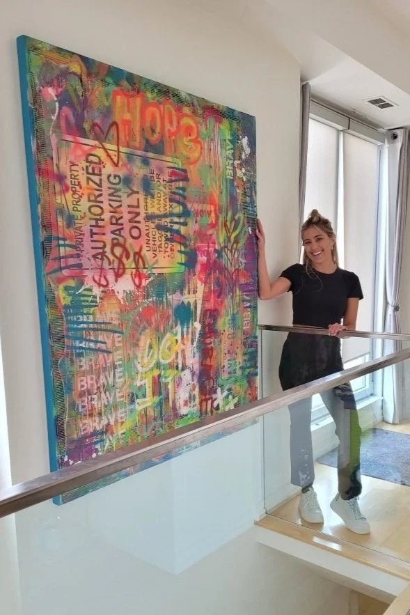 Once the space has been reviewed and the artwork size determined, Alyssa shifts the focus to the client’s personal vision. Whether it’s a favourite colour, a meaningful phrase, or simply the desire for a bold statement piece that complements the interior, this stage is about uncovering the visual and emotional impact the artwork should create. Together, you explore the desired aesthetic and the feelings the piece should evoke. From there, a working agreement is signed, and materials are ordered to begin the creative process.
